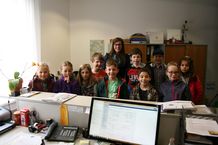 Wir waren heute mit der Klasse im Gemeindeamt. Zuerst sind wir zum Bürgerservice zu Marcelle gegangen. Marcelle hat uns viel über ihren Beruf erzählt. Anschließend gab sie uns noch etwas Süßes. Danach sind wir zum Gemeindesekretär Günter gegangen. Er hat uns viele interessante Dinge über die Gemeinde erzählt. Als uns Günter alles erzählt hatte, sind wir noch zum Bürgermeister gegangen. Er beantwortete unsere Fragen genau. Wir besuchten auch noch Stefan vom Bauhof. Zum Schluss gab's noch ein kleines Getränk im Sitzungszimmer. (Felix Bachmann, 3. Klasse)