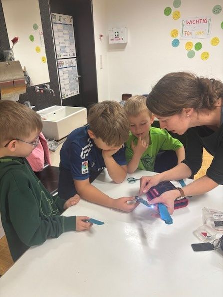 Nach kurzen Einführungen konnten die Kinder in allen Workshops selbstständig forschen, experimentieren und entdecken. Dabei entstanden unter anderem Plakate, Papiertaschenlampen und viele spannende Erkenntnisse.