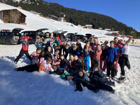 Die Kinder waren am 25. Februar auf einem sonnigen Schitag in Damüls. Ski-begeisterte Lehrer und Eltern, viele davon Lehrwarte und erfahrene Skifahrer, führten die Kindergruppen durchs Gebiet – mal flott, mal gemütlich, manchmal auch mit kleinen Purzelbäumen. Genau dieser Zusammenhalt macht unsere Schule besonders – gemeinsam sind wir stark. Nach einem gemütlichen Mittagessen ging es mit guter Laune wieder die Pisten hinunter. Ein herzliches Dankeschön an alle Eltern, die diesen tollen Tag möglich gemacht haben!